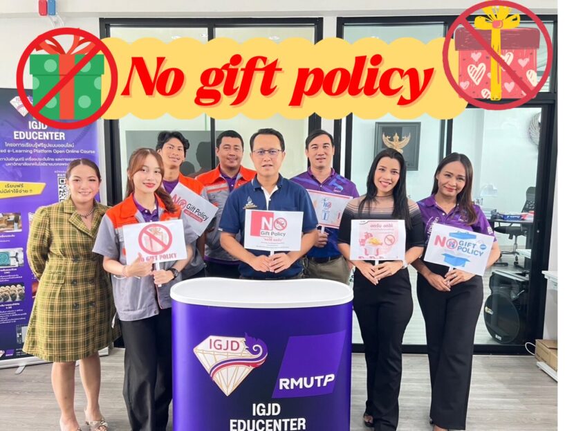 “ประกาศเจตนารมณ์ ผู้บริหารและบุคลากรทุกคนไม่รับของขวัญและของกำนัลทุกชนิดในขณะ/ก่อน/หลังปฏิบัติหน้าที่ (No Gift Policy)”